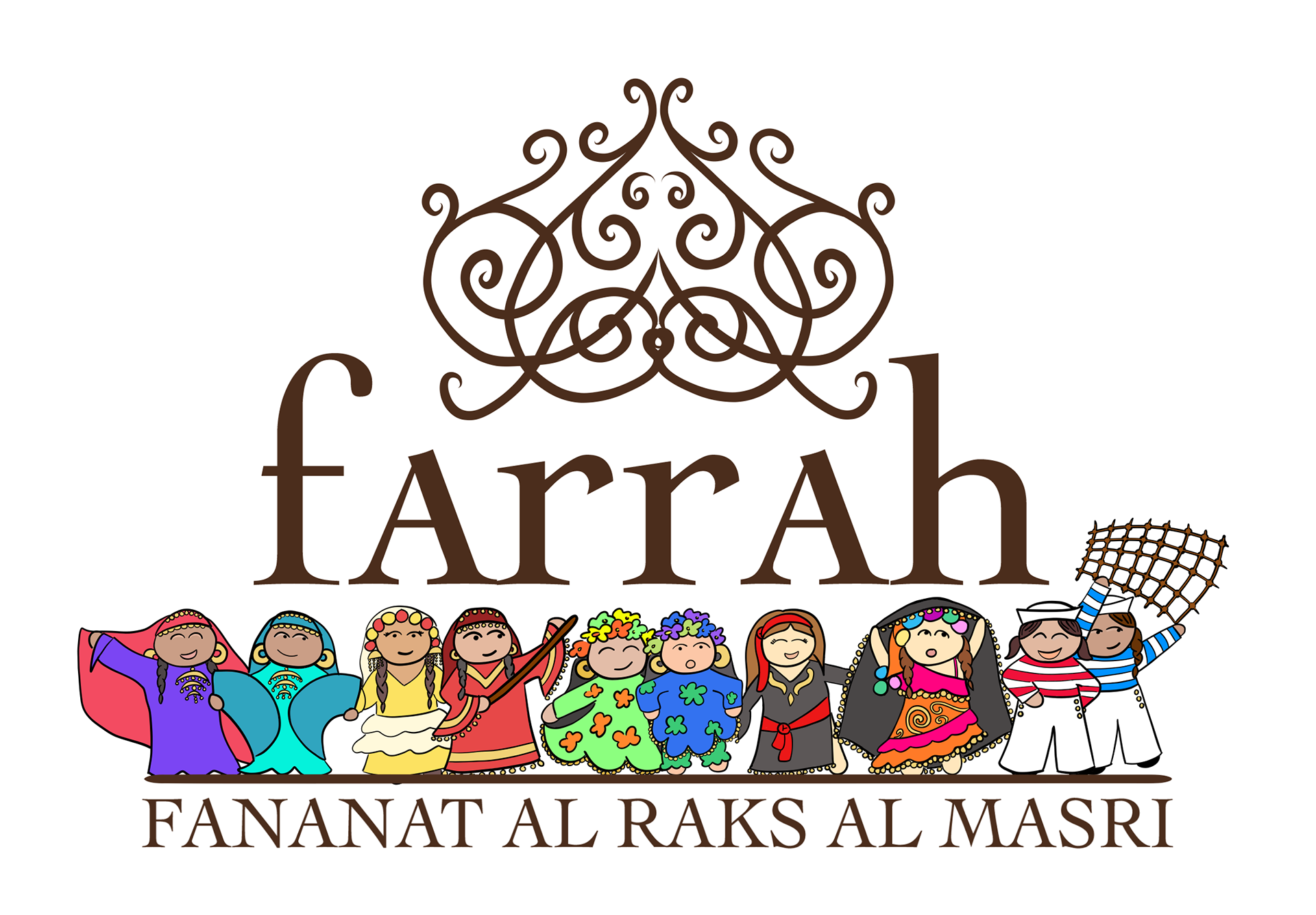 The aim of the anniversary logo and promotional material was to showcase the colourful, playful and joyous nature of the Egyptian dances presented by Farrah. Inspiration was drawn directly from Farrah's wardrobe with their costumes reflected on the characters depicted in the logo and promotional collateral.